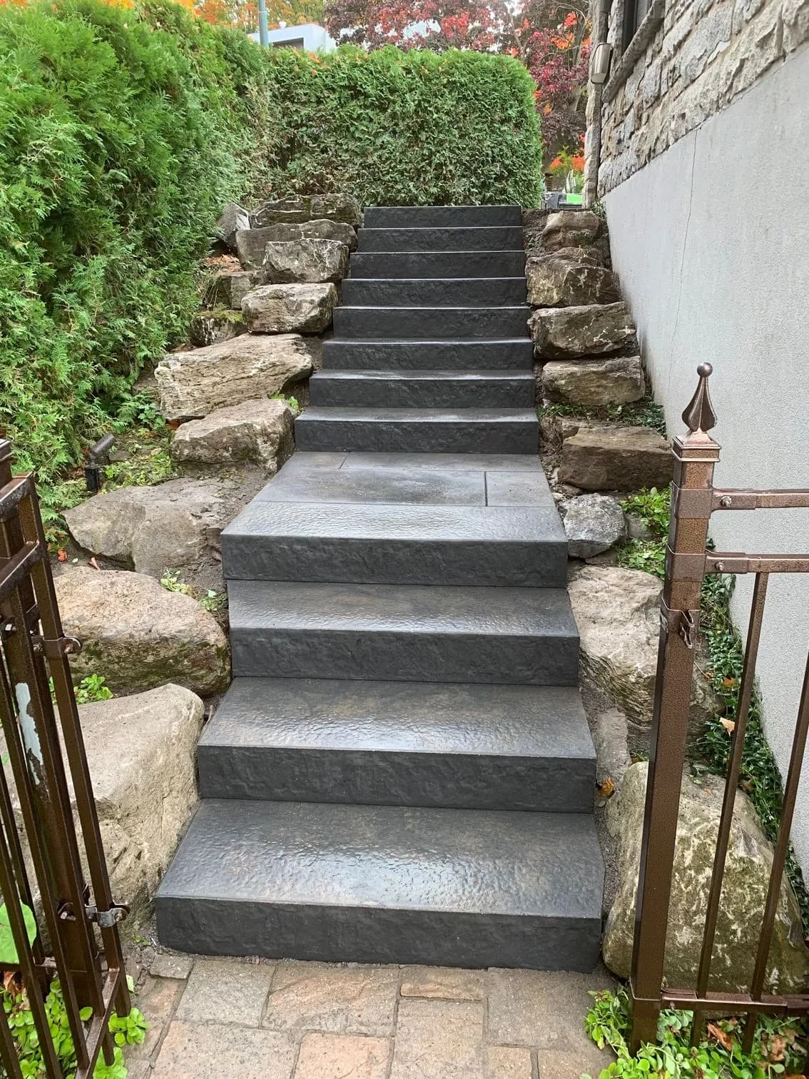 Nous avons refait, l’entrée en asphaltage, excavation, muret roches, perron en interbloc ainsi qu’un trottoir de pierres naturelles. J’ai eu un très bon service de la part d’Émilie et Jean-Benoit.